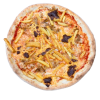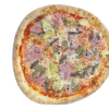 Pomodoro, Mozzarella, Prosciutto Cotto, Funghi Champignon, Cuore di carciofino a fette, Acciughe, Capperi, Origano